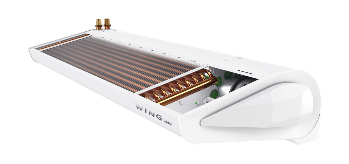 WING W hava perdesi, sıcak su girişli ısıtma sistemi sayesinde geniş kapı açıklıklarında güçlü ve homojen bir hava bariyeri oluşturur. Yüksek hava debisi, enerji tasarruflu EC motoru ve verimli ısıtma modülü ile iç ortam ısısını koruyarak enerji kaybını minimuma indirir. Modern mimariyi tamamlayan minimalist gövdesi ile hem estetik hem de fonksiyonel bir çözümdür.